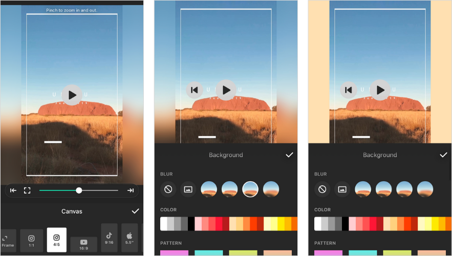 You can also place your video on a background; choose a plain colored background within the app, or upload an image from your device.