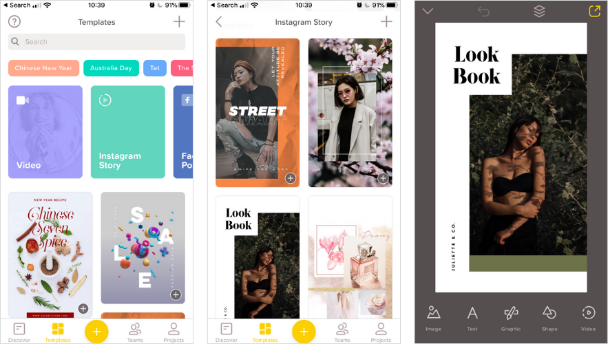 Canva's mobile app is another super-simple way to create beautiful Instagram Stories templates — and it thrives in giving users creative flexibility.